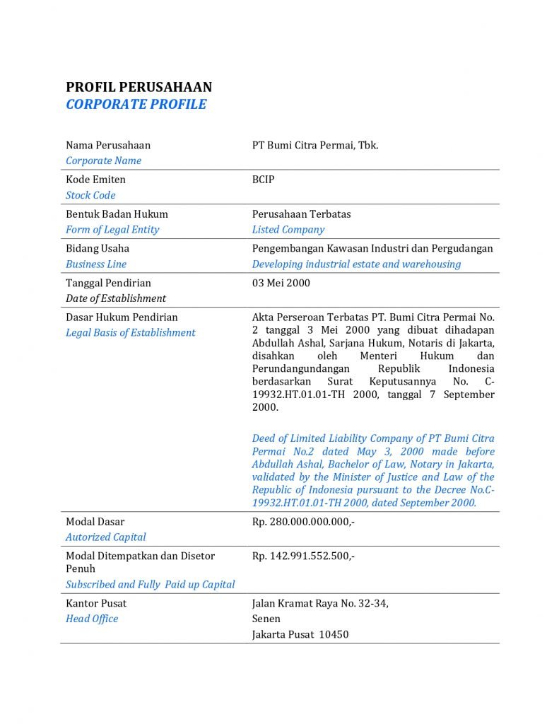 To position PT Bumi CItra Permai Tbk as a reputable industrial area developer, who owns and develops qualified industrial area to be considered by both national dan international industrial company